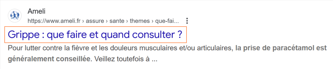 Le titre de l’article est quant à lui l’en-tête principal du contenu, habituellement en balise H1, que l’on voit en haut de la page une fois que l’on clique sur le lien.