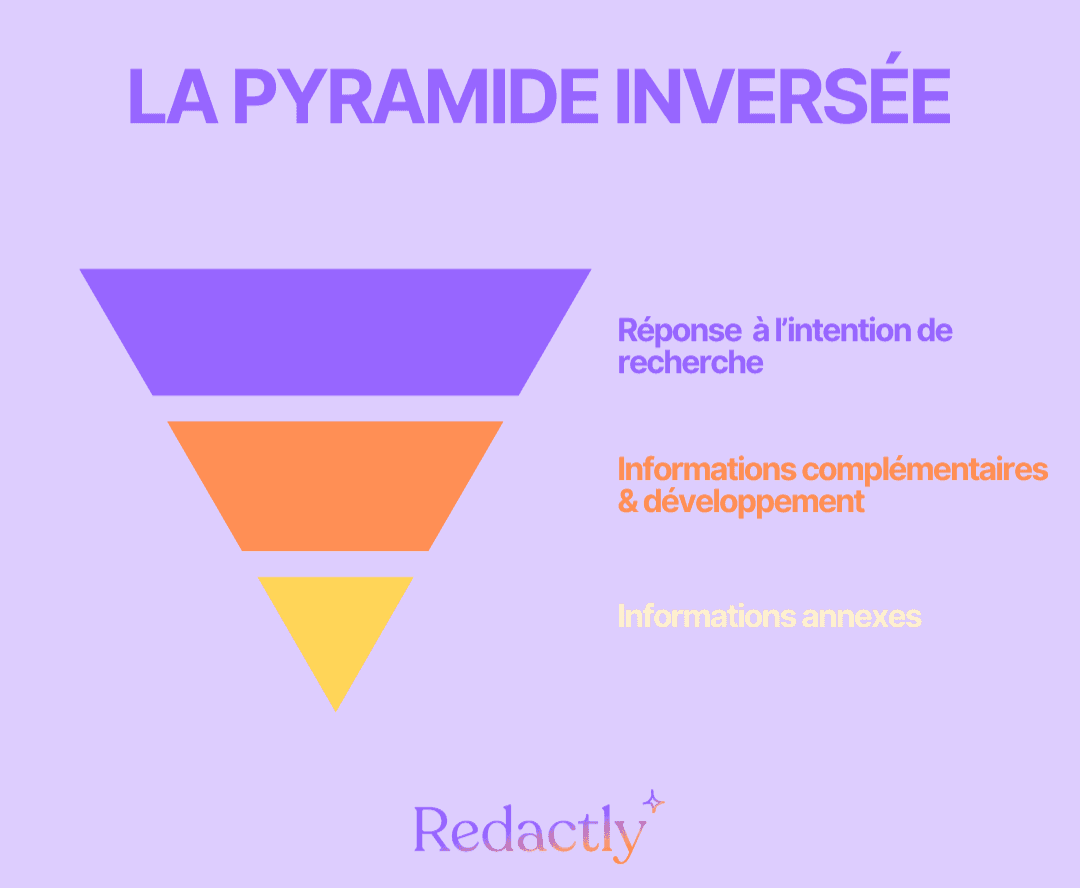 La pyramide inversée est une méthode d'écriture très répandue sur le web, qui consiste à placer les informations les plus importantes, celles que souhaite lire le lecteur, tout en haut d’un texte.